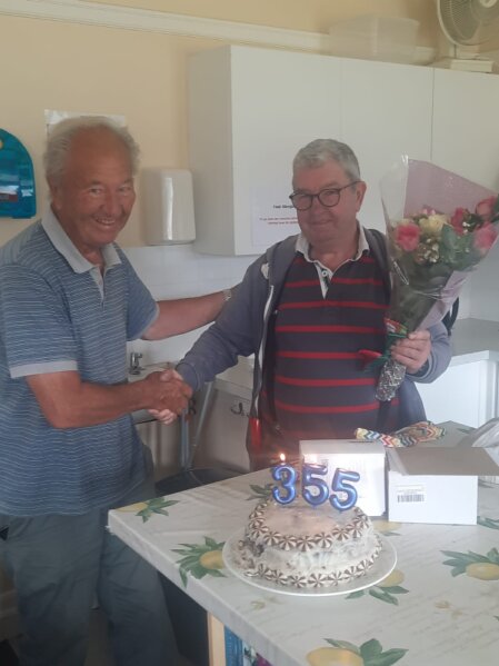 A great many thanks to Howard, the club's groundsman - who retired to-day after thirty-five plus years of outstanding service to the club. His dedication and excellent advice on green maintenance has resulted in the club having one of the very best crown green bowling greens in the East Midlands. He was presented with a number of gifts to mark his last day - and words of thanks were given by Richard.